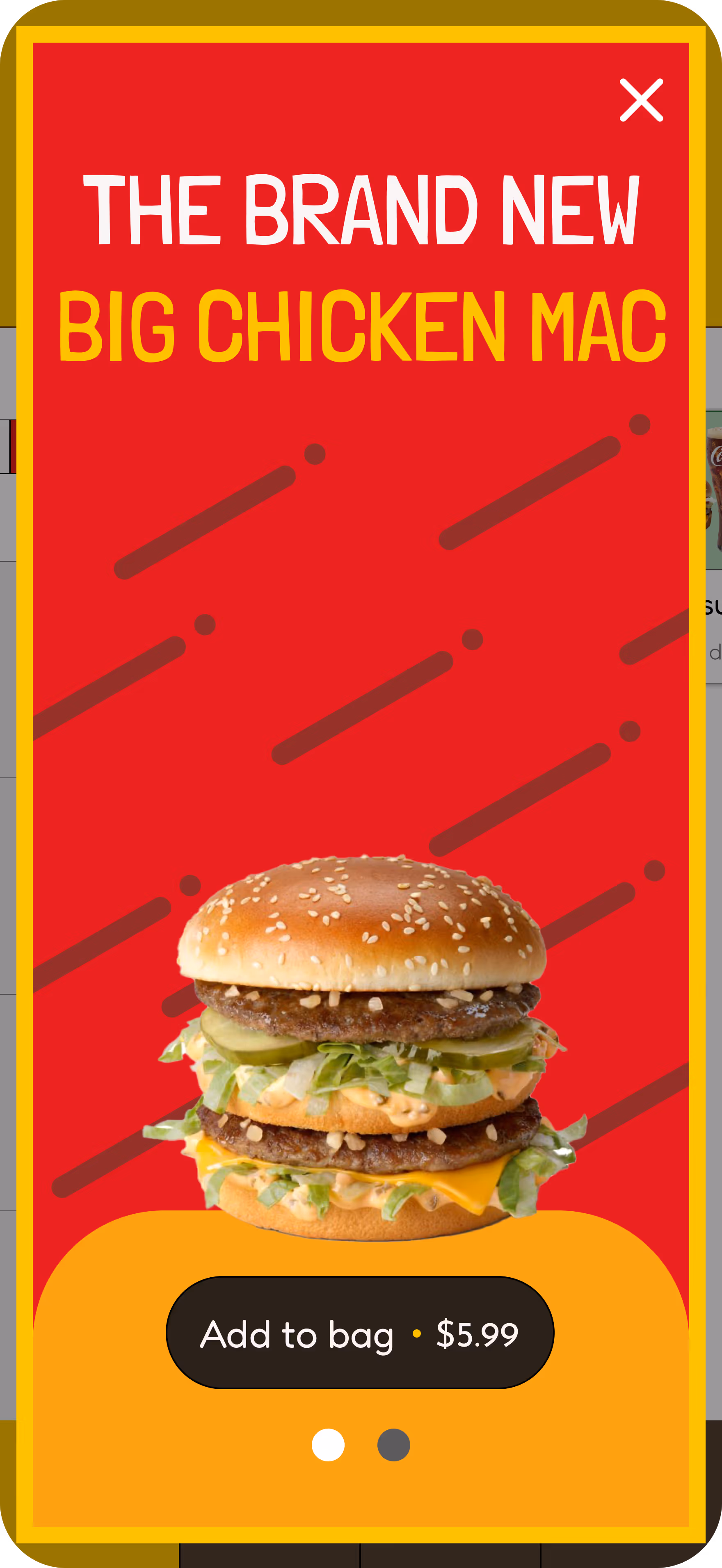 A vibrant redesign blending bold colors, lively interactions, and oversized food imagery to reinforce McDonald’s energetic spirit.